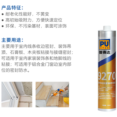 生活是屬于自己的,我們都在努力的營造安全、環(huán)保、美好的家庭環(huán)境,普賽達進行了大量的資金投入和實驗,系列化的推出了家裝產品及配套服務,從安全、環(huán)保、和可操作性等方面進行了大量的驗證,應用包含瓷磚、木地板、廚衛、家具、大理石等等粘接、密封、防水、防霉需求。產品與細微處,盡顯品質生活。